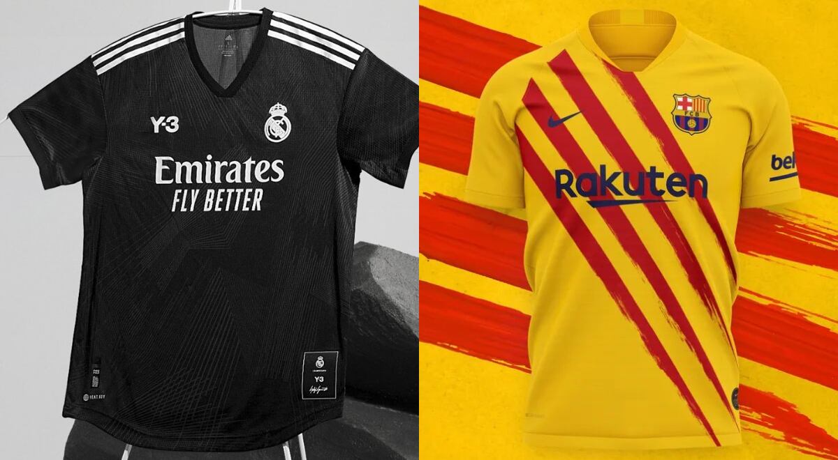 Los blancos, utilizarán su cuarta camiseta 2021/22 de la mano de Y-3 (marca de adidas y Yohji Yamamoto). Esta celebra los 120 años del club y se usará en El Clásico contra Barcelona. Por su parte, el Barcelona utilizará la camiseta de la ‘senyera‘, misma que ya han utilizado en varios partidos de visita en las últimas temporadas.