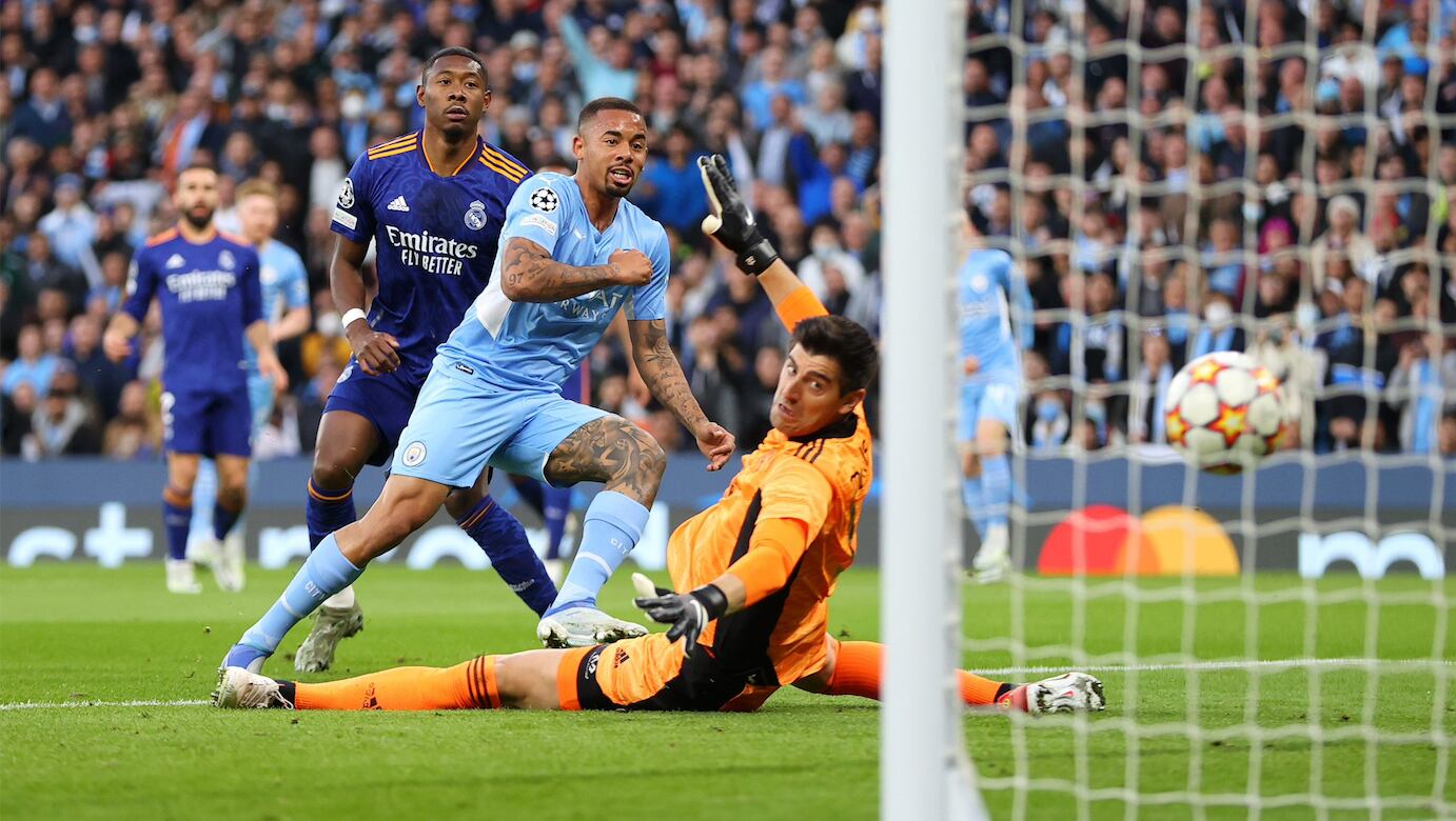 Tras un error en defensa De Bruyne hizo un centro desde la izquierda que no pudo despejar Alaba, apareció Gabriel Jesús, controló el balón, se dio media vuelta y batió a Courtois para poner el 2-0 de forma tempranera.