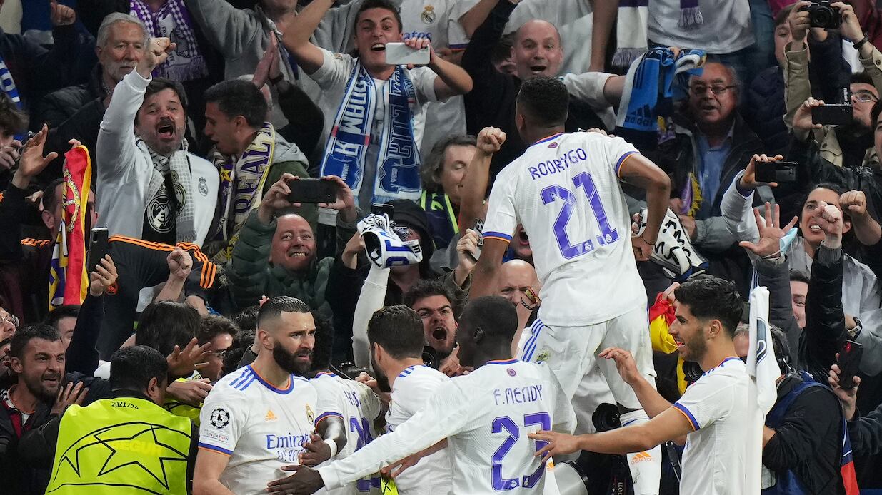 Carvajal envió un centro que tocó ligeramente Asensio y después remató de cabeza Rodrygo para el 2-1 (5-5) y forzar a los tiempos extras, donde Benzema sentenció con un tiro penalti en el 94, tras una falta dentro del área de Rubén Dias.