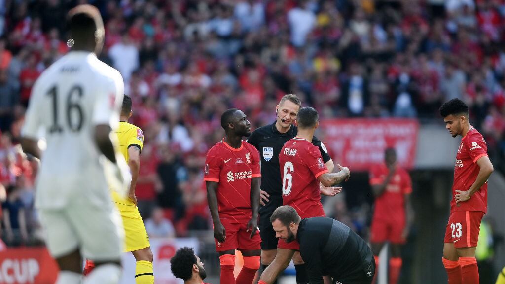 Fabinho se retiró lesionado del partido de la Premier League de la semana pasada contra el Aston Villa a los 28 minutos. El centrocampista del Liverpool fue baja confirmada para la final de la FA Cup contra el Chelsea de este sábado y duda para la final de la Champions que jugarán frente al Real Madrid el 28 de mayo.