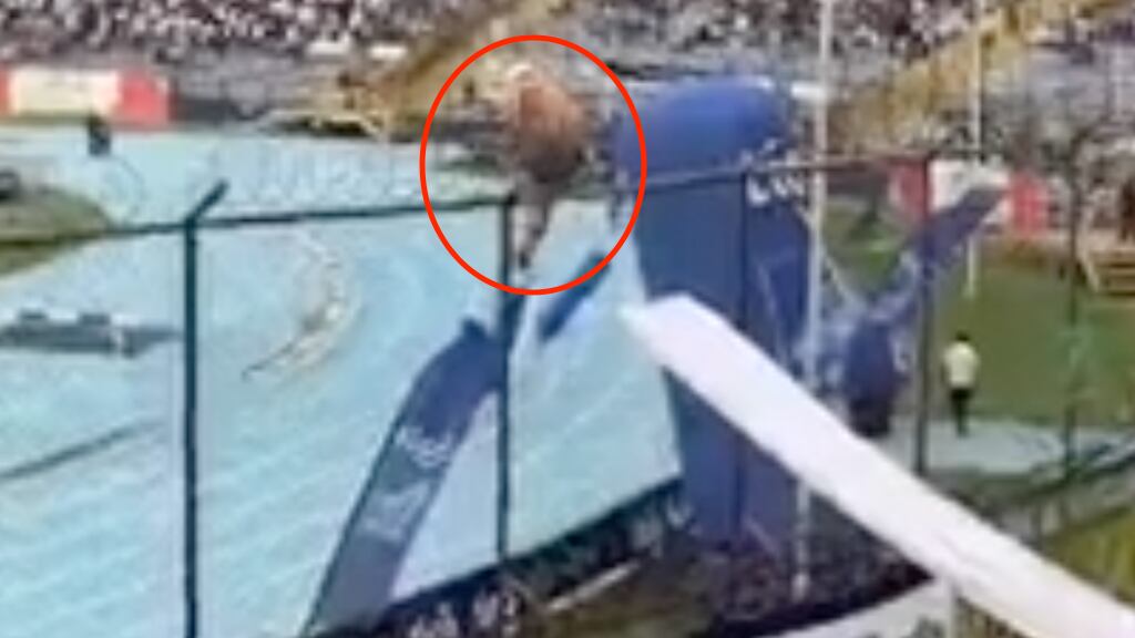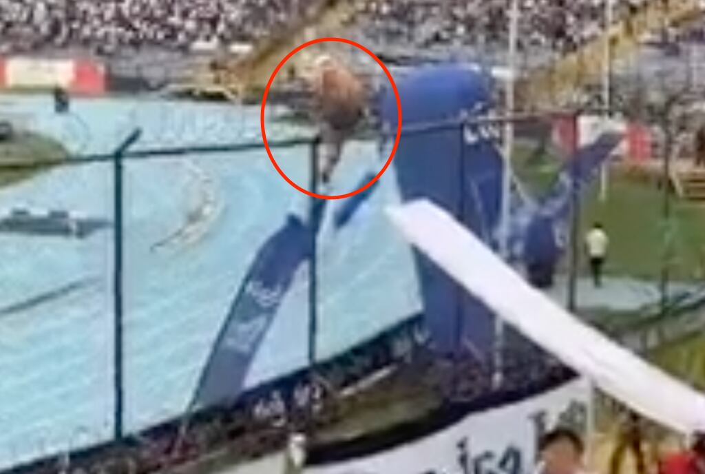 Según se observa en el video, el hincha escaló la malla hasta la parte más alta para acomodar una de las mantas blancas que se miran en las imágenes, de acuerdo con la versión de sus acompañantes. Sin embargo, las cosas no le salieron como las planeó, debido a que la grabación muestra cuando cae desde lo alto, por lo que otros aficionados acuden a auxiliarlo. Tras la fuerte caída, el sujeto logra ponerse de pie y se dirige a su asiento. Afortunadamente este suceso no terminó en tragedia, pero sí fue captado en el telefóno celular por un testigo.