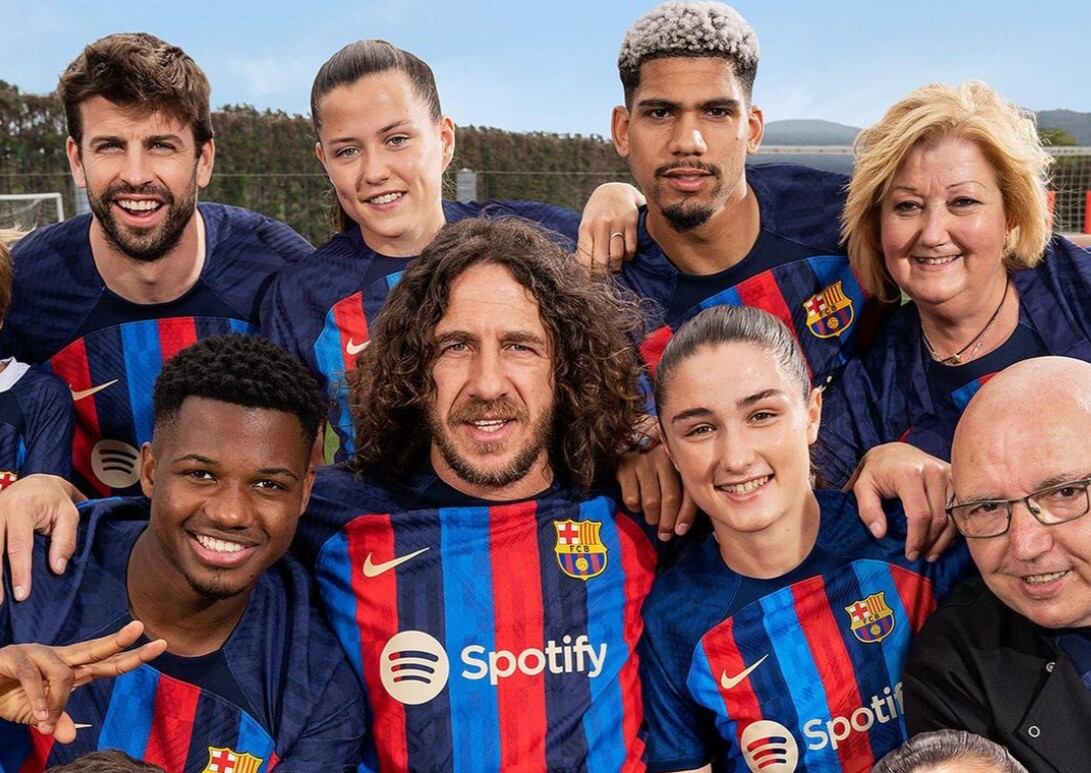 Una de las grandes novedades que presenta la equipación de la temporada 2022/23 es el estreno del nuevo patrocinador principal, puesto que por primera vez las camisetas de los primeros equipos de fútbol masculino y femenino llevarán Spotify en el frontal junto con el swoosh de Nike, ambos en tonalidad sésamo.