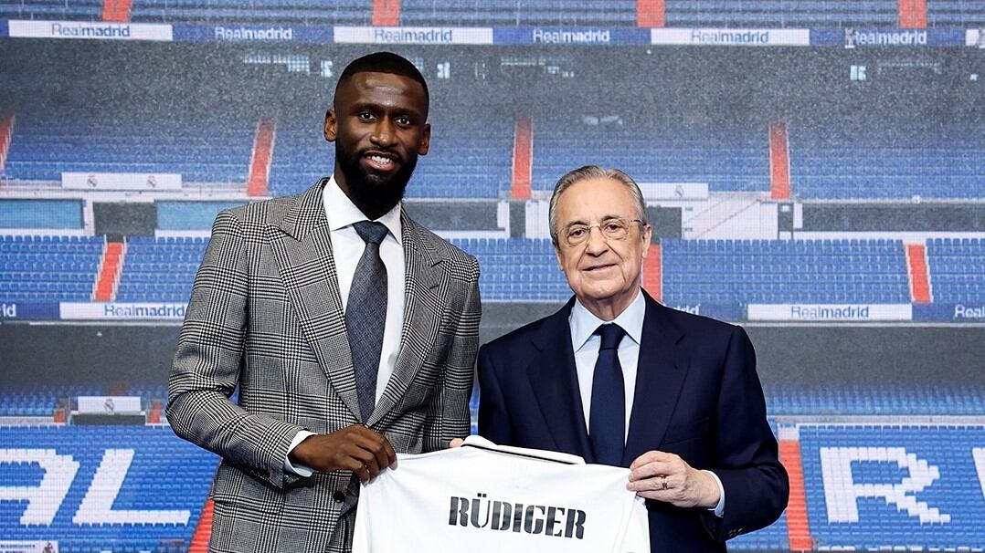 Rüdiger, que ya pasó el reconocimiento médico y firmó su nuevo contrato, fue presentado en un acto presidido por el presidente del club madridista, Florentino Pérez.