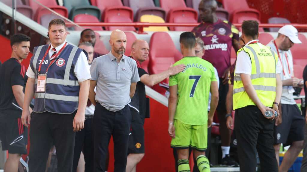 El Manchester United no recibía cuatro tantos en los 35 primeros minutos desde mayo de 1990, en un duelo ante el Nottingham Forest. La situación es ya preocupante para el nuevo entrenador del Manchester United, Erik Ten Hag, que no pudo ocultar las carencias de su equipo pese a la titularización de Cristiano Ronaldo.
