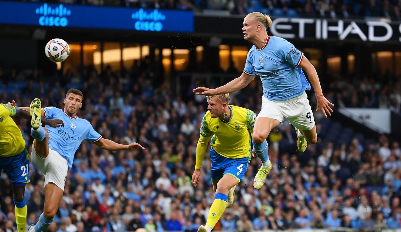 Con un triplete de Erling Haaland el Manchester City goleó por 6-0 al Nottingham Forest y se mantiene como sublíder de la Premier League con solo dos puntos menos que el puntero, Arsenal, que superó al Aston Villa por 2-1, mientras que el Liverpool sufrió para ganar en el descuento al Newcastle (2-1) con un gol del joven portugués Fabio Carvalho. Tras el conseguido el pasado sábado ante el Crystal Palace (4-2), es el segundo triplete consecutivo de Haaland, que bate así varios récords en la Premier League.
