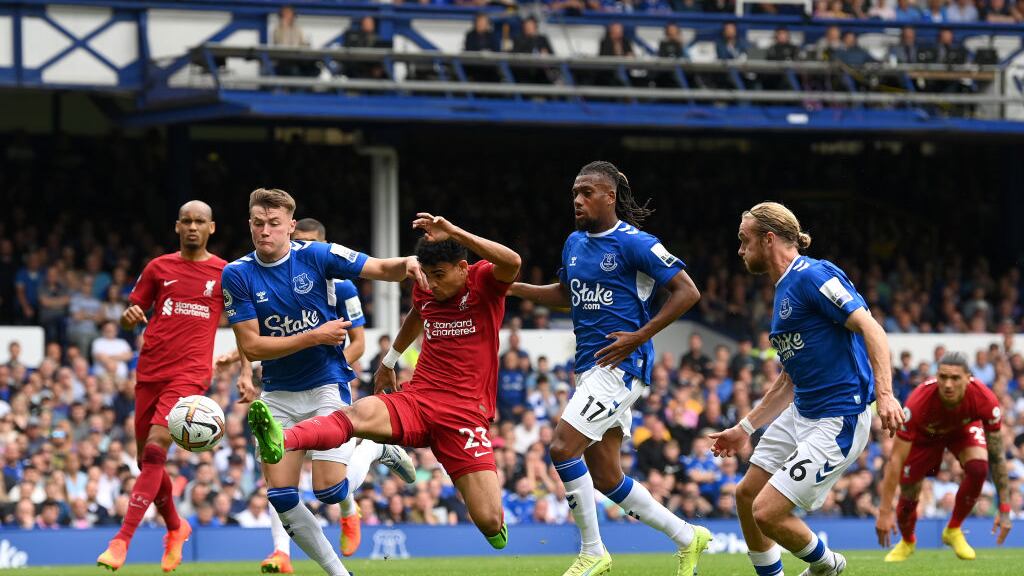 Liverpool tuvo su primer intento sobre los 26 minutos del primer tiempo, luego de un tiro libre ejecutado por Kostas Tsimikas que buscó a Luis Díaz; el colombiano no consiguió empalmar y el balón se perdió al fondo. Pasaron seis minutos cuando la respuesta de los ‘Toffees’ llegó, justo cuando el local lucía mejor. Remate de James Tarkowski que se estrelló en uno de los palos de Alisson.
