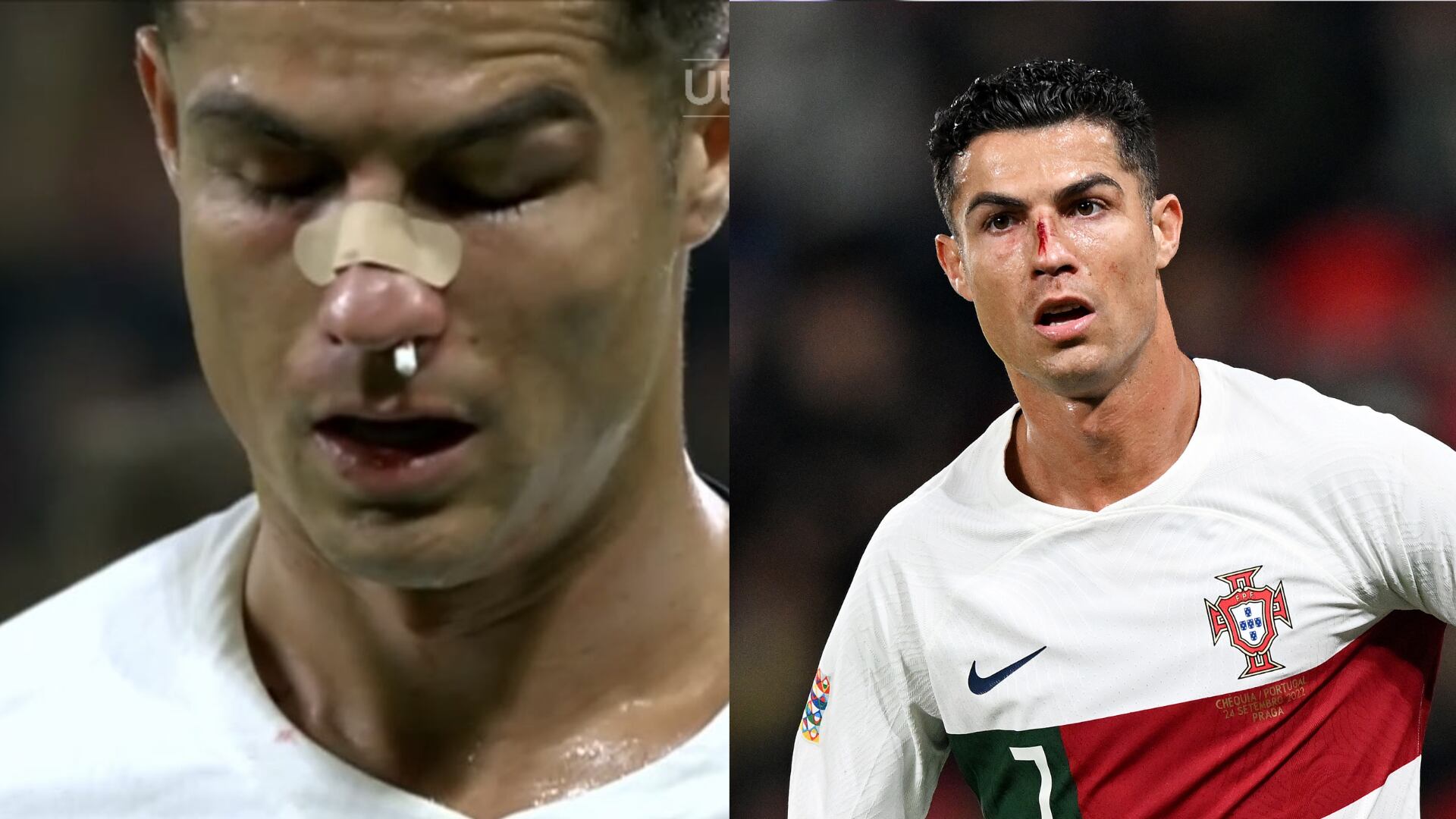La quinta fecha de la Nations League de UEFA dejó una de las imágenes más impactantes de la jornada, el capitán de Portugal, Cristiano Ronaldo, sufrió un choque ante Tomas Vaclik, portero de la República Checa, que lo dejó tendido sobre la verde y con una hemorragia en la nariz tras sufrir un impacto con el codo del meta rival. A pesar del golpe, Cristiano no dejó el terreno de juego y apoyó en la goleada 0-4 de los lusos.