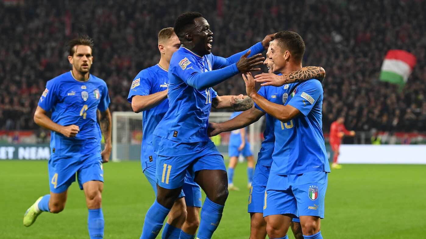 Después de casi conseguirlo en un error del portero local Peter Gulacsi (5), salvado por su compañero Attila Szalai, que sacó la pelota en la línea, los italianos se adelantaron en el marcador a los 27 minutos, cuando en un error en la salida de la pelota de los magiares, Raspadori lo aprovechó para regatear el arquero del Leipzig y marcar a puerta vacía.