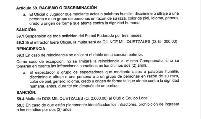 Los hechos ocurrieron el 24 de septiembre durante el partido entre Marquense y Nueva Concepción, por el grupo A, que terminó con victoria de los “Leones” por 2-0 y en el que Cavallo, según acta arbitral, lanzó fuetes insultos racistas al colombiano John Balanta, del equipo de los “Potros”.