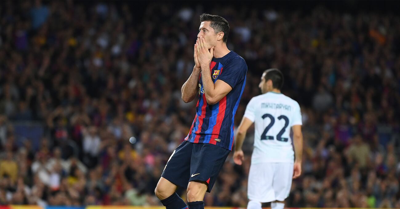 Llegó el Barça con claridad en el minuto 10 y de ahí en adelante tomó más confianza. Remató Lewandowski de cabeza en el segundo palo cruzado y Mkhitaryan la sacó con el pie de la línea de gol.