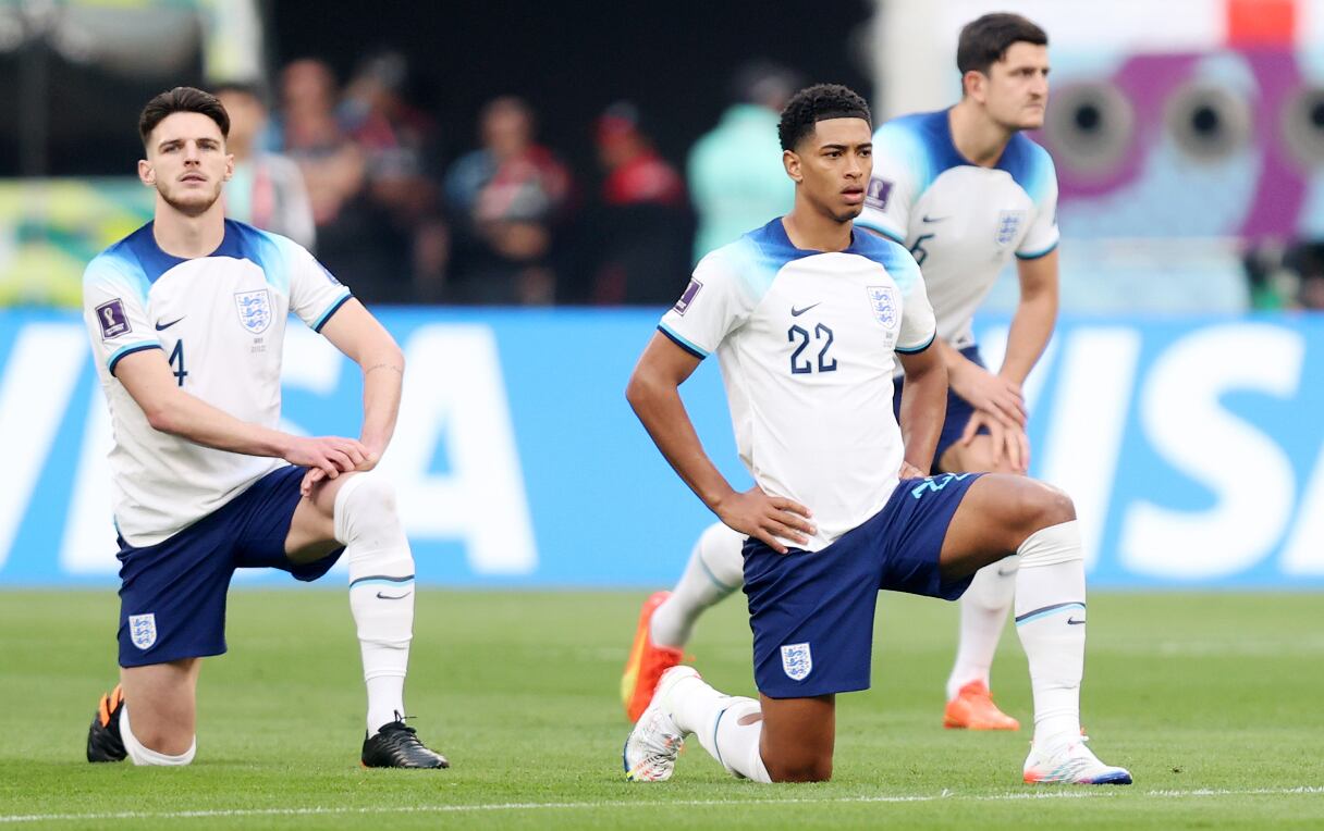 Mientras los jugadores de Irán mostraron su rechazo al régimen de su país, los ingleses se arrodillaron previo al inicio del partido. Guiados por su estrella Harry Kane, los seleccionados se hincaron, además, portaron en el brazo un brazalete con un mensaje en contra de la discriminación. Ya habían advertido que se arrodillarán en cada juego como gesto contra el racismo.