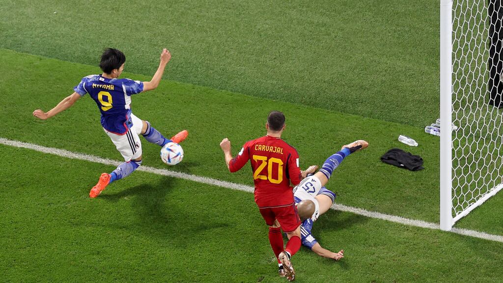 ¿Había salido el balón por completo por la línea de fondo? Esa es la pregunta que tenía que resolver el colegiado y lo hizo el VAR. La respuesta fue que no. Por tanto, Japón consiguió remontar el partido (2-1) y acabó líder del grupo E la fase de grupos.