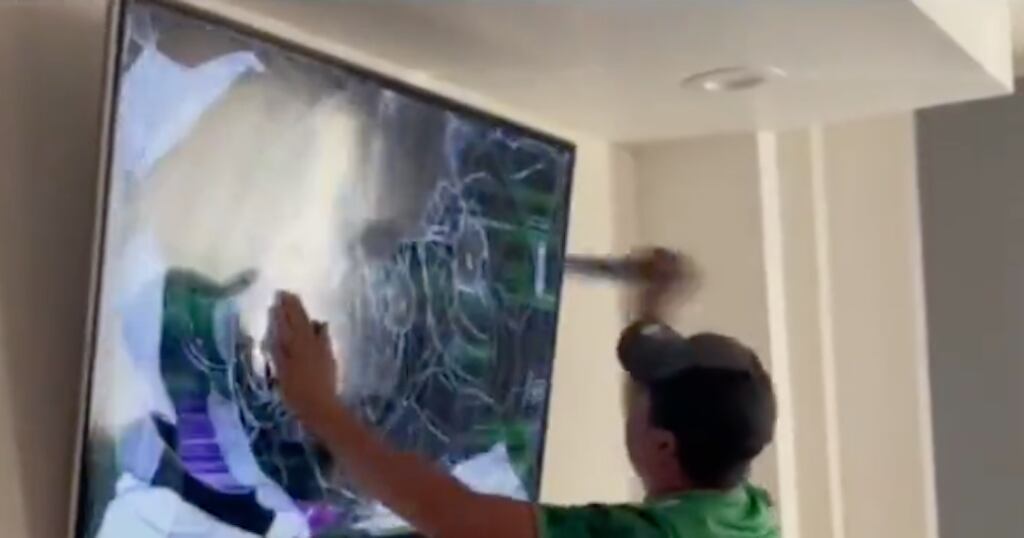 Gonzalo fue uno de los millones de mexicanos que hicieron manifiesta su desilusión; sin embargo, a este aficionado se le fue la mano y, no conforme con ver la televisión destrozada, tomó un cuchillo e intentó clavarlo en la pantalla LED.