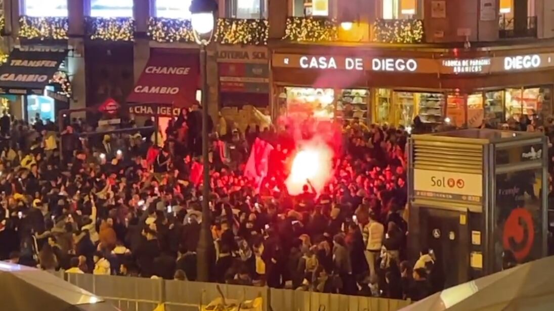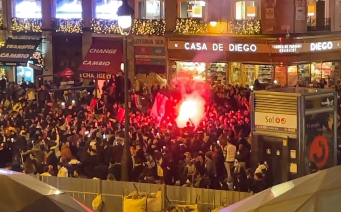 A través de redes sociales se han observado diversas imágenes en las que se ve como los aficionados marroquíes se movilizan al centro de Madrid para celebrar como hermanos el histórico triunfo que los hace estar por primera vez en su historia en los cuartos de final de una Copa del Mundo; además son la única selección africana que sigue en pie.
