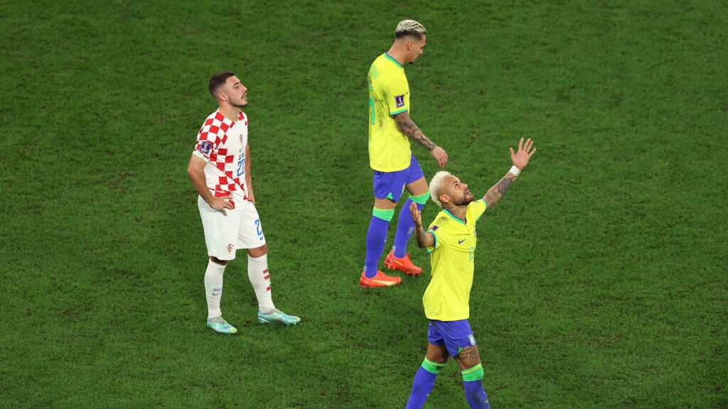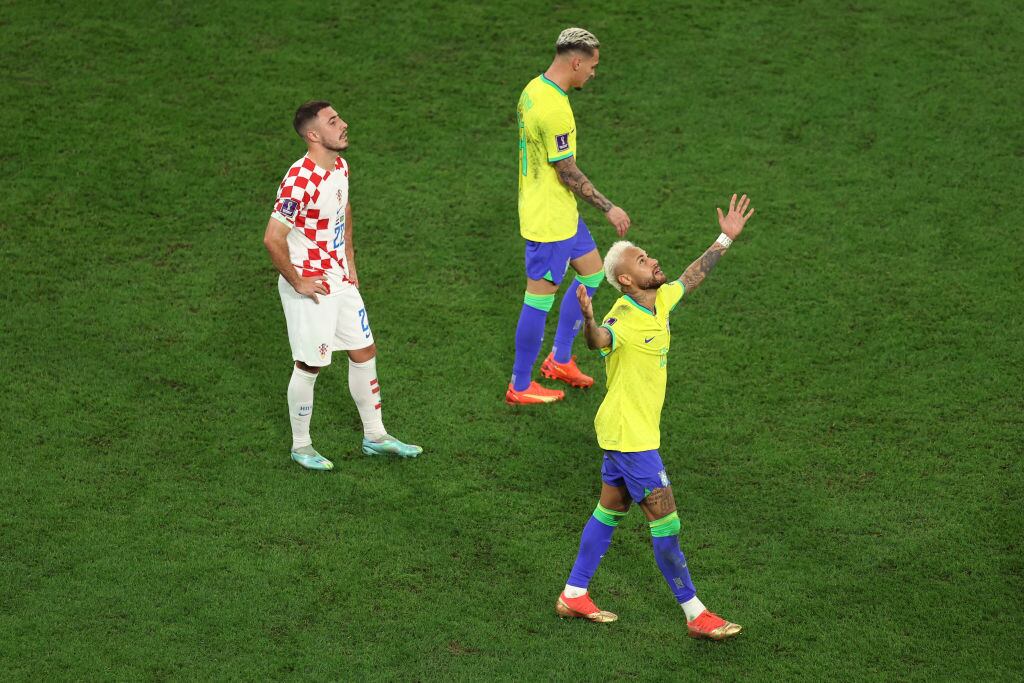 Al final de la primera parte de la prolongación, cuando Brasil se veía incapaz de romper el muro croata, y el empate sin goles persistía, Neymar recibió un balón en el área, y tras regatear al portero croata, Dominik Livakovic, anotó el 1-0 parcial.