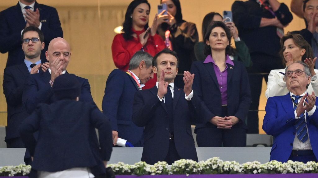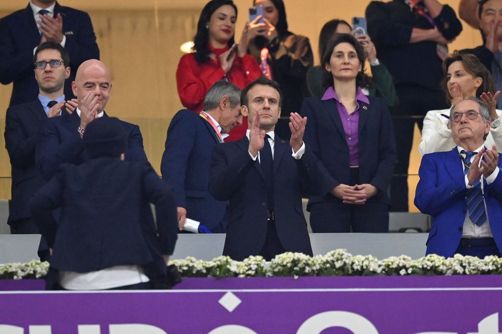 Macron está acompañado por el futbolista Christopher Nkunku, baja en la Copa del Mundo por una lesión, los exinternacionales Alain Giresse, Bruno Cheyrou y Laure Boulleau así como por la árbitra internacional Stéphanie Frappart.