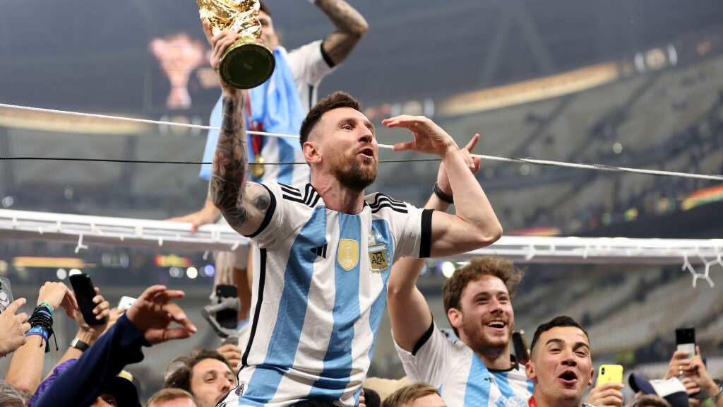 Vestido con una túnica negra, típica del mundo árabe, Lionel Messi alzó la Copa del Mundo este domingo en el estadio de Lusail en Doha, donde Argentina venció en penales a Francia (4-2, tras empatar 3-3) en una final de leyenda.