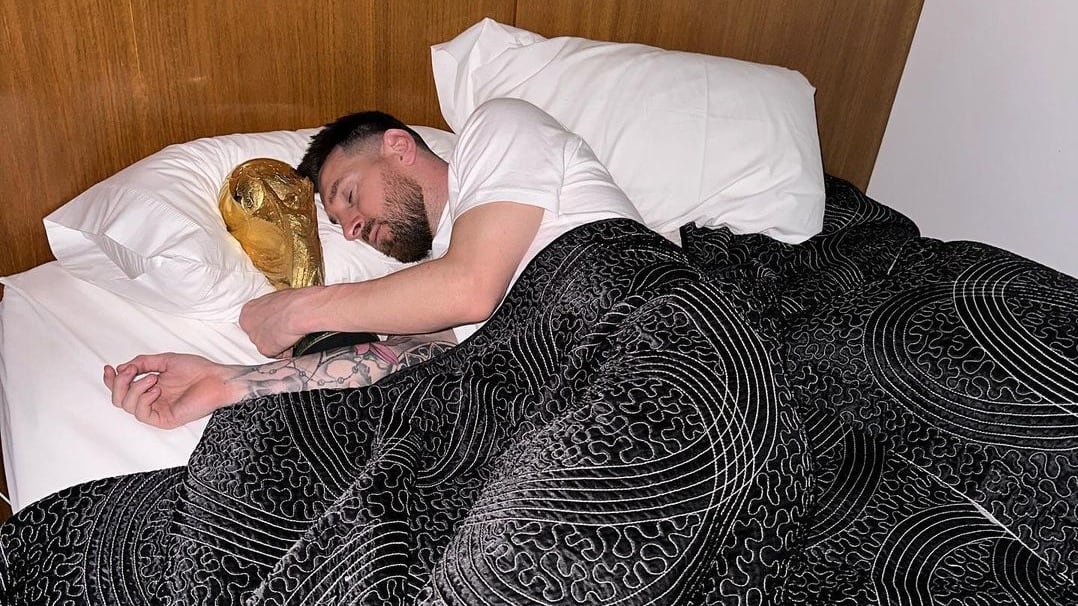 Ya listos en Argentina para convivir con su afición la celebración del título del Mundial 2022, la delegación albiceleste amaneció este martes en Buenos Aires y el despertar de Lionel Messi se convirtió en tendencia tras verse que durmió acompañado de la Copa del Mundo.