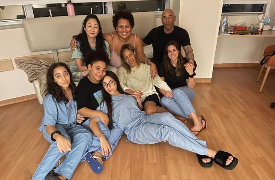 En la foto junto a Kely están Flavia y Edinho, también hijos de Pelé, y sus nietas Sophia y Stephany, entre otros.