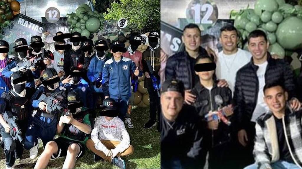 En algunas de las imágenes, compartidas por el futbolista, se ve a los niños con armas y simulando ataques entre sí, algunos, además de su indumentaria alusiva al crimen organizado, portaban el uniforme del Cruz Azul.