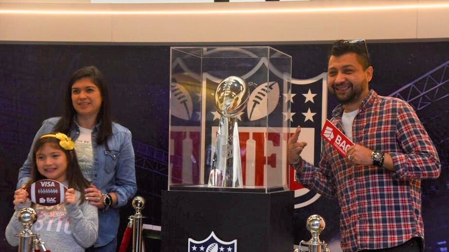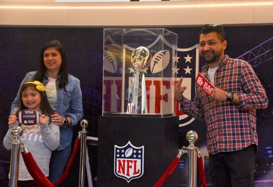 Gracias a Visa Inc., patrocinador oficial de la National Football League (NFL), y de BAC Credomatic, se presentó esta mañana en Guatemala “el exclusivo trofeo del Super Bowl, que disputan 32 equipos cada temporada de NFL”.