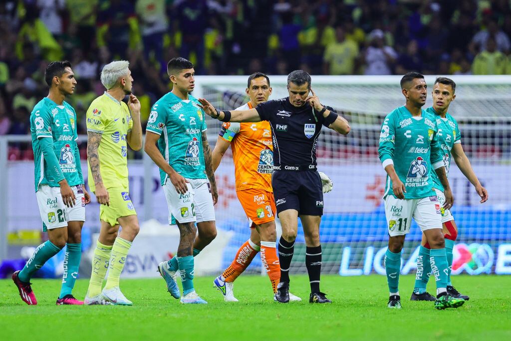 El partido se salió de control, para el central Fernando Fernández pues cinco minutos después América marcó el 2-1 y nuevamente los jugadores leoneses comenzaron a reclamar al árbitro que el gol era ilegítimo por una falta previa.