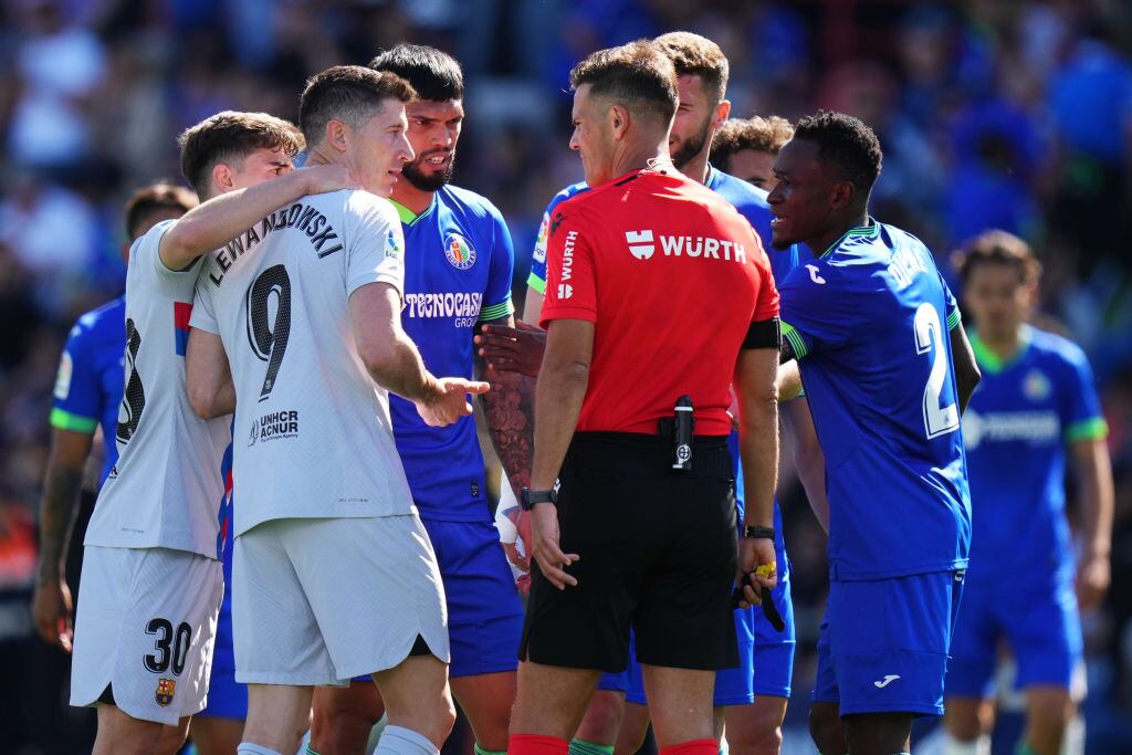 Durante el segundo tiempo del partido entre Getafe y FC Barcelona, el ritmo del juego no disminuyó, pero hubo pocas ocasiones claras de gol. El Barcelona siguió intentando imponer su juego y generar oportunidades, mientras que Getafe se defendía con solidez y buscaba sorprender al contragolpe. Robert Lewandowski, uno de los referentes del equipo visitante, tuvo un par de ocasiones para marcar, pero sus disparos no encontraron el arco rival.
