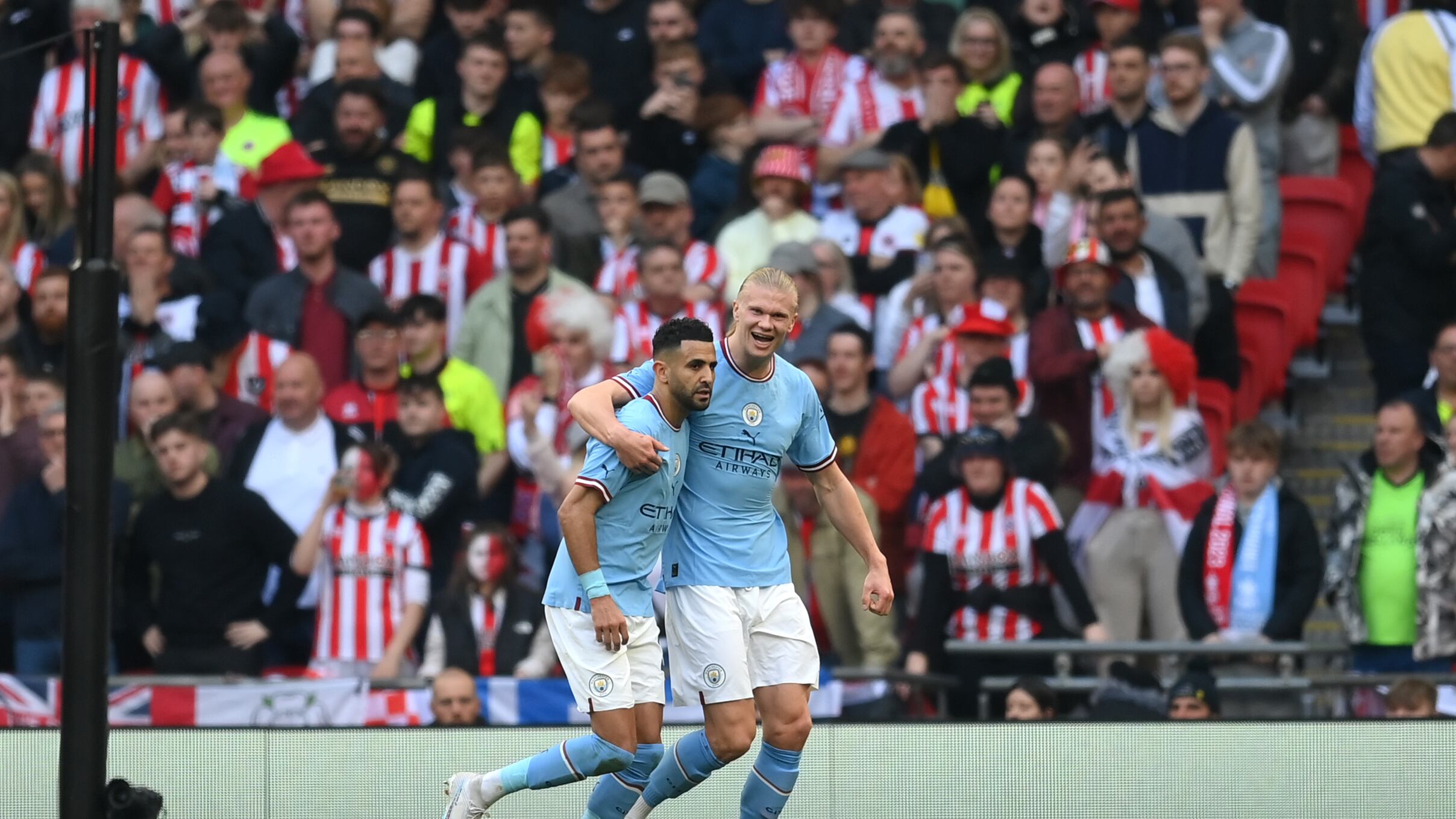 El argelino tendría una tarde noche inspirada en Wembley y al 61′, tras una excelente jugada individual, puso el 2-0 en una acción en la que poco pudieron hacer los defensores. La “tapa del pomo” llegó al 66′ con un centro raso de Grealish que fue empujado al fondo de la red por el argelino, que se llevó el balón del encuentro.