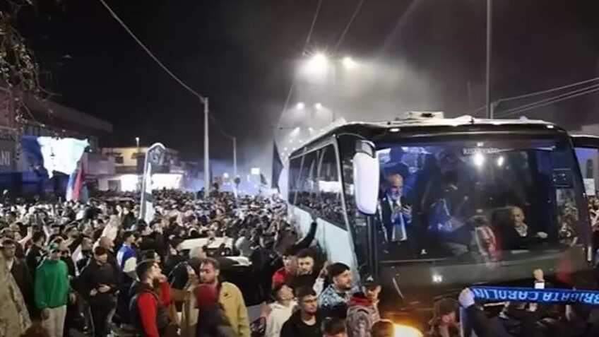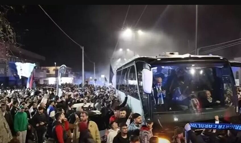 Los jugadores del Nápoles fueron recibidos en la madrugada del domingo al lunes por miles de aficionados (tifosi) en su regreso a la ciudad tras su victoria contra la Juventus (1-0) en Turín, que les ofrece la posibilidad de ganar el “scudetto” desde este domingo.