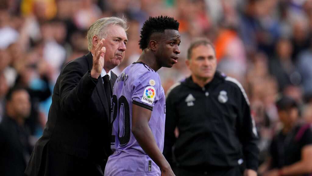 Al final del partido, Carlo Ancelotti, técnico del Real Madrid, se pronunció en la televisión que tiene los derechos televisivos de La Liga: “No quiero hablar de futbol, el estadio ha llamado ‘mono’ a Vinícius”.