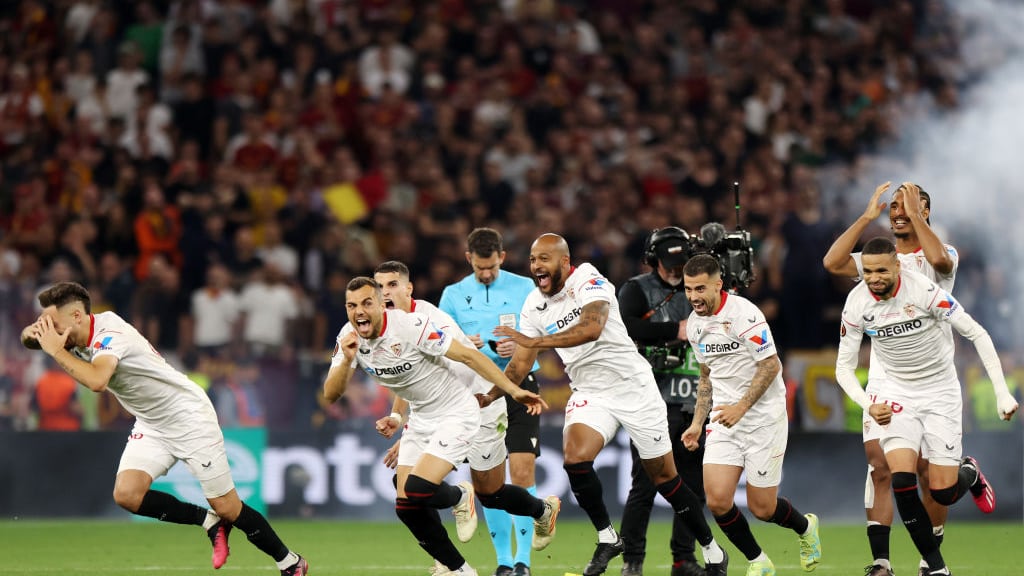 La Roma no pudo ante Sevilla y cayó 4-1 en tanda de penaltis tras igualar 1-1 en 120 minutos. Los héroes de Budapest fueron el portero Bono y el argentino campeón del mundo, Gonzalo Montiel, quien marcó el penalti más importante de la tanda para darle por séptima vez, el título al Sevilla. Montiel repite la dosis empleada en la final del mundo Qatar 2022, cuando con su penalti le dio el título mundial a Argentina, esta vez, es el penalti del título de la Europa League.