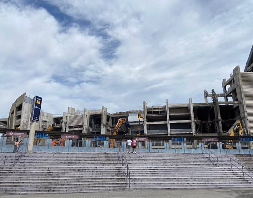 Este martes múltiples usuarios en las redes sociales comenzaron a compartir videos de las demoliciones que se llevan a cabo en el Camp Nou. Las obras en el estadio actualmente están derrumbando los pilares de la tercera gradería, la cual será la siguiente en ser derrumbada.