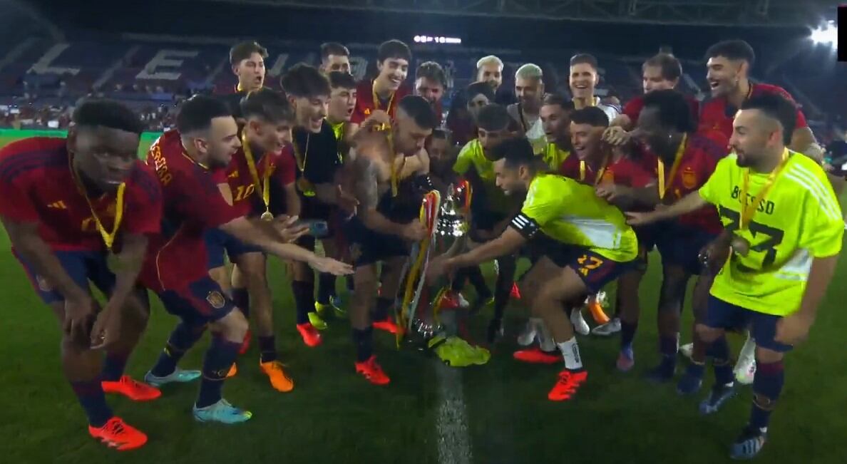 Desde el minuto 40 hasta el final de la primera parte, el juego tuvo la llamativa dinámica de que los 20 futbolistas de cada equipo estuvieran en el terreno de juego. En un campo con poco espacio, Pereira puso el 3-0 al 45+4′ con el que España se fue con amplia ventaja al descanso.