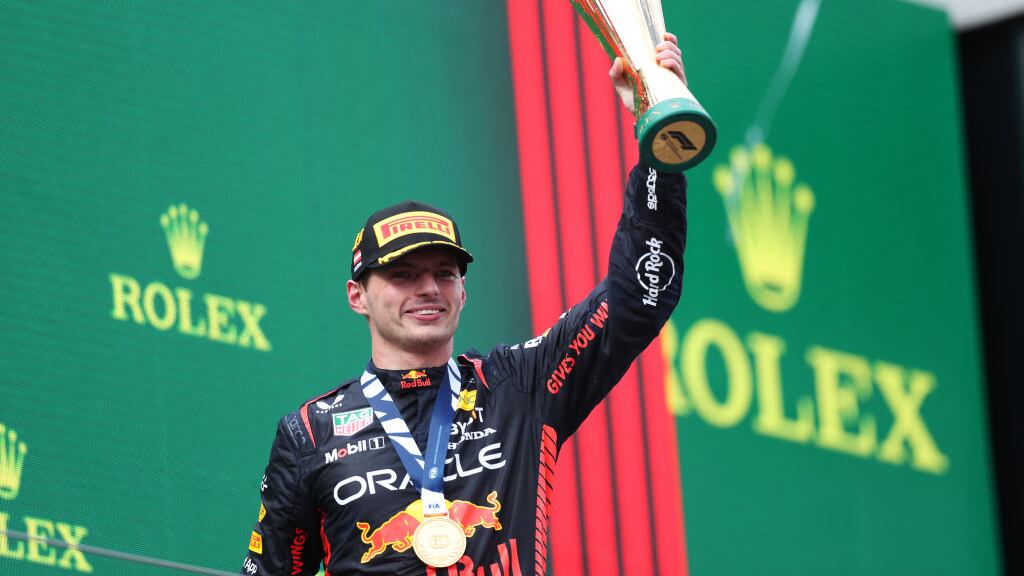 Verstappen y Checo Pérez en el podio