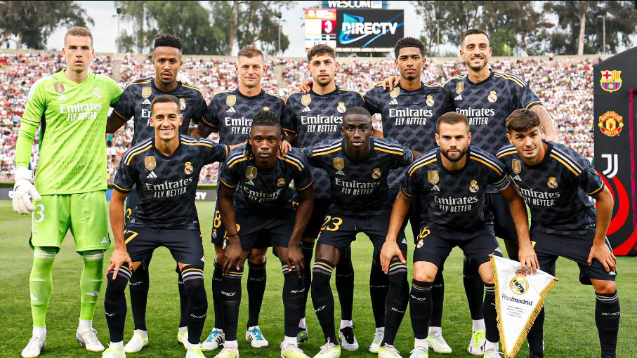 El Real Madrid utilizó a estos jugadores en su primera presentación internacional: Lunin, Lucas, Militao, Nacho (capitán), Mendy, Camavinga, Kroos, Valverde, Bellingham, Brahim y Joselu.
