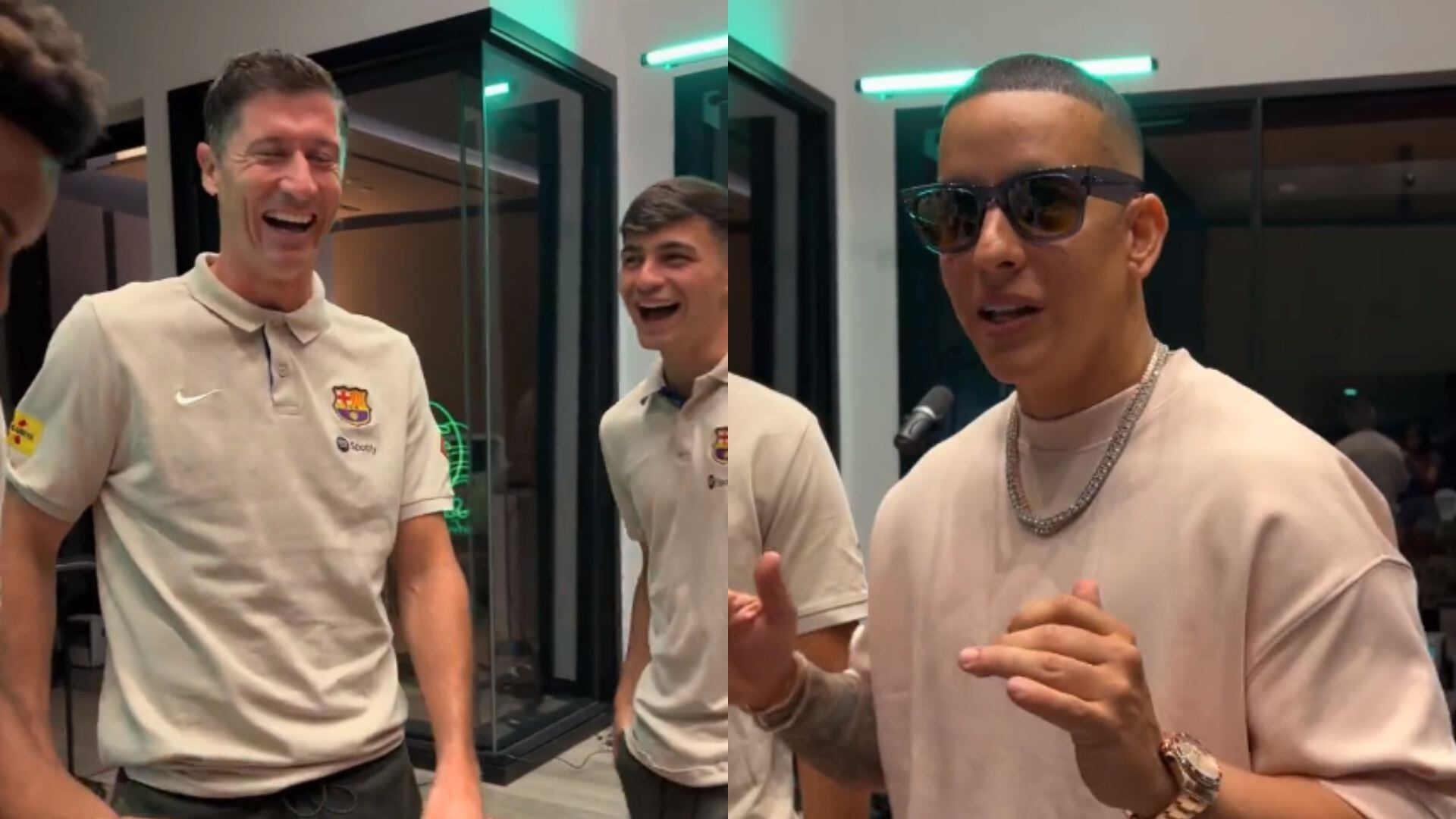 Durante el encuentro entre los jugadores y el famoso reguetonero, surgió un momentazo en el que los futbolistas intentaron imitar el tradicional grito “Diguá” característico de Daddy Yankee. El ambiente fue festivo y ameno, con los deportistas buscando replicar con entusiasmo el distintivo sonido. Pedri, en su primer intento, provocó risas con su interpretación, mientras que Lewandowski y Alejandro Balde lo lograron acertadamente a la primera.