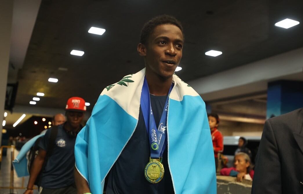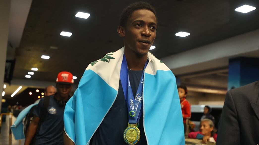 El patinador guatemalteco, Faberson Bonilla, regresó anoche al país con sus dos medallas de oro logradas recientemente en el Campeonato Mundial de Patinaje de Velocidad Vicenza 2023.