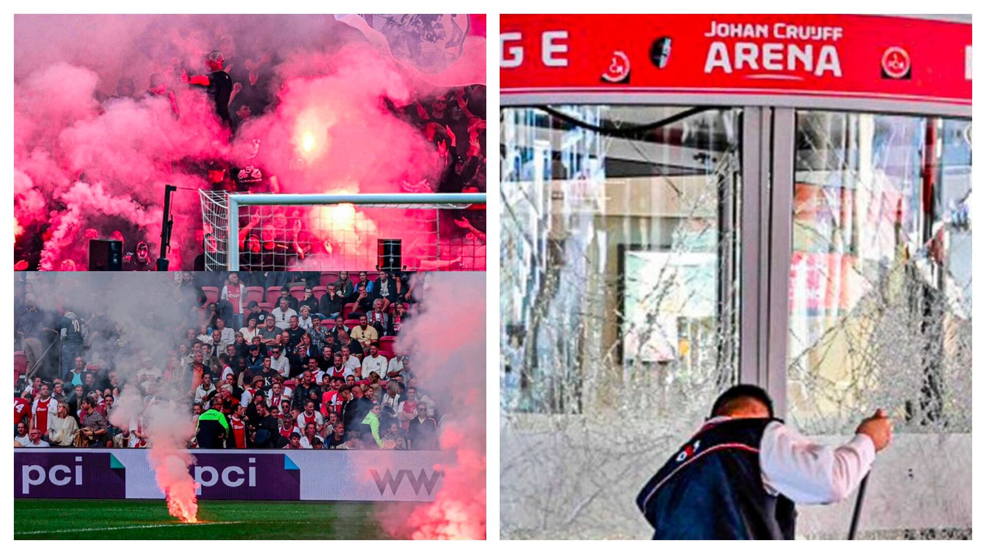 La puerta de entrada principal al estadio Johan Cruyff Arena fue vandalizada, según imágenes que circulan a través de las redes sociales y según confirmó la policía.
