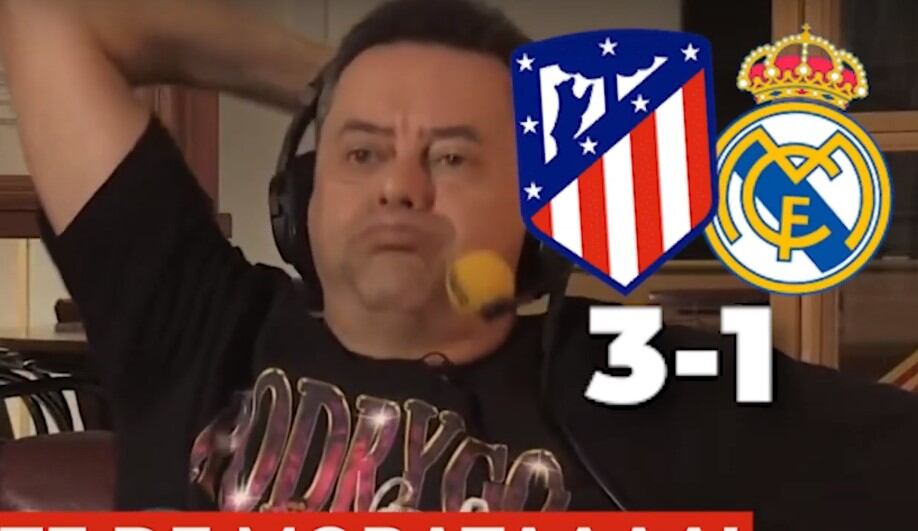 Sin embargo, la alegría resultó efímera, ya que al inicio de la segunda mitad (minuto 46), Álvaro Morata marcó el gol definitivo que selló el 3-1 a favor del Atlético de Madrid. Roncero, visiblemente afectado y sin sus lentes, quedó estupefacto ante la anotación del exmadridista. Nuevamente, su frustración se hizo evidente al propinarle un par de golpes al sofá y quedarse varios segundos con las manos en la cabeza.