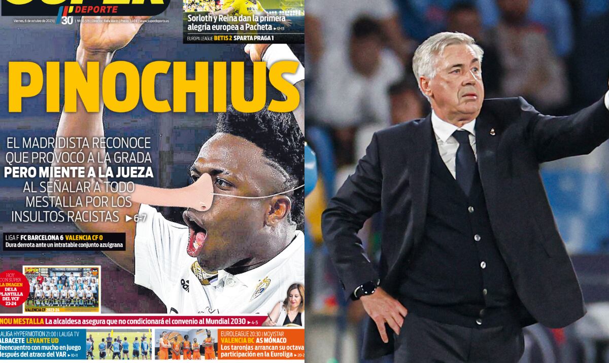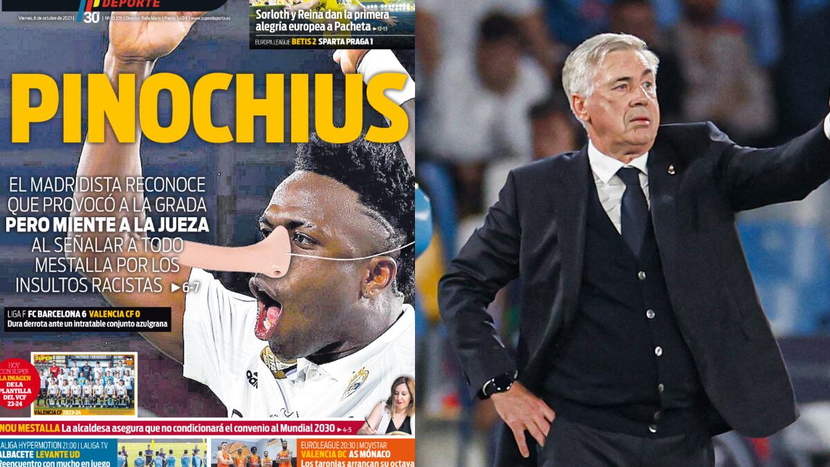 La polémica se desató cuando el diario Super Deporte, con sede en Valencia, publicó en su portada una imagen de Vinicius Jr. con una larga nariz postiza bajo el título “Pinochius”, en clara referencia al personaje del cuento infantil Pinocchio, cuya nariz crecía cuando mentía. Además, el subtítulo del periódico afirmaba que el jugador madridista “provocó a la grada pero mintió a la jueza al señalar a todo Mestalla por los insultos racistas”.