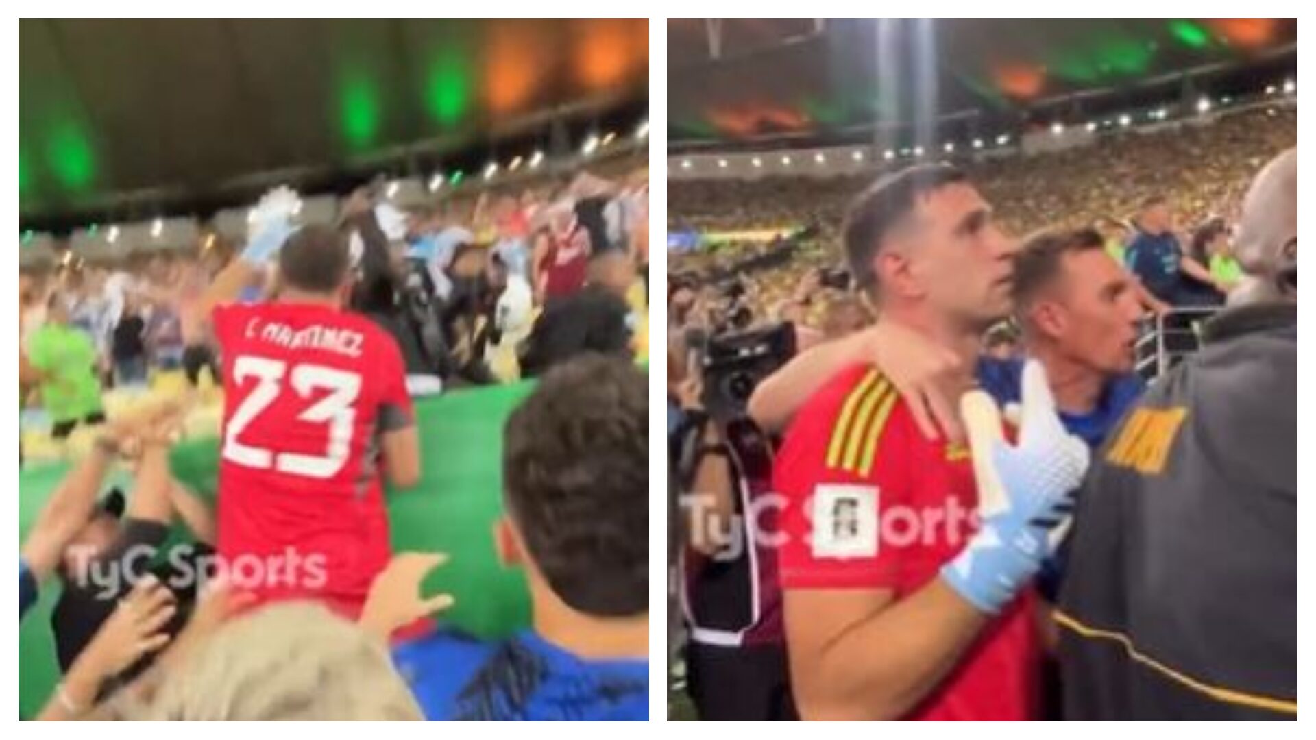 Uno de los momentos que llamó la atención fue cuando el portero de los campeones del mundo, Emiliano Martínez, intentó quitarle el bastón (macana) a un policía, quien sometía al orden a algunos aficionados argentinos. Ante dicha situación, personal encargado de la organización del partido llamó a la calma al portero internacional.