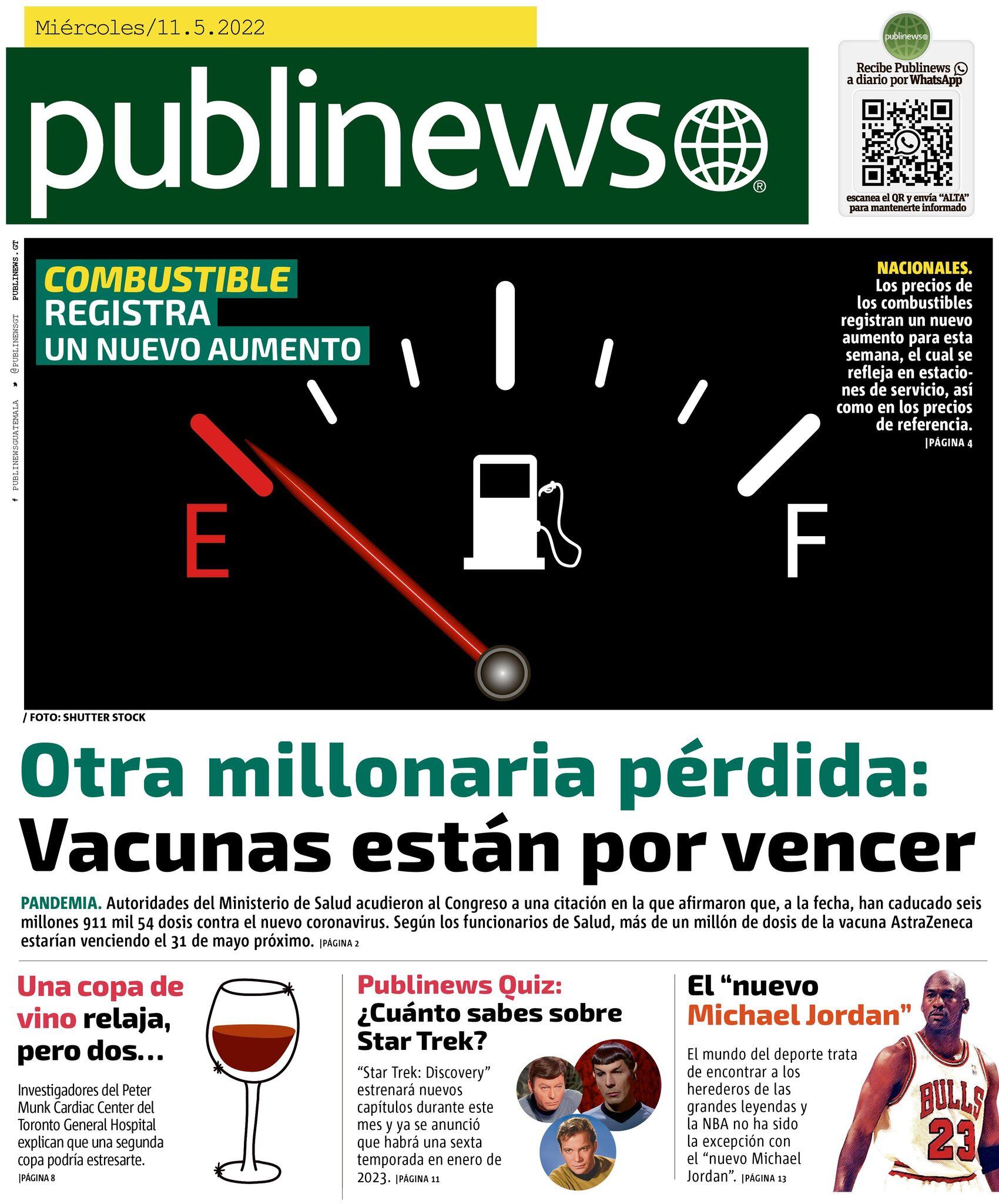 Edición impresa del 11 de mayo de 2022 Edición impresa del 11 de mayo de 2022 Por Publinews10 de mayo 2022 a las 23:26 hrs.Tags