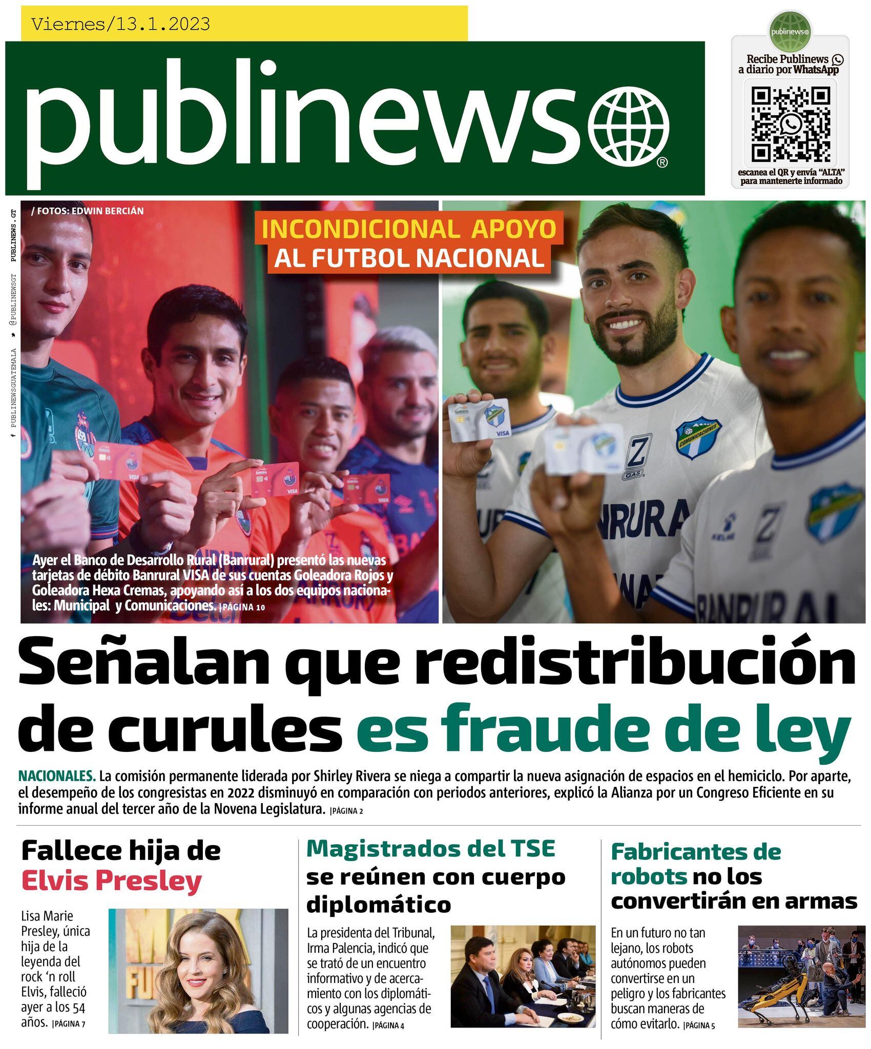 Edición impresa del 13 de enero de 2023 Edición impresa del 13 de enero de 2023 Por Publinews12 de enero 2023 a las 23:17 hrs.Tags