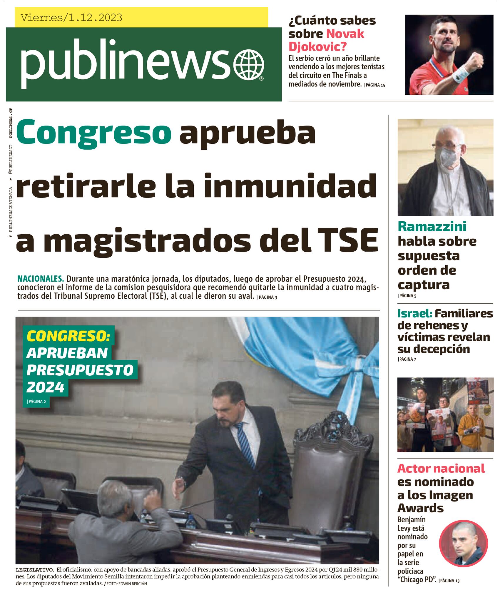 Pantalla CompletaExpandirEdición impresa del 1 de diciembre de 2023 Edición impresa del 1 de diciembre de 2023 Por Publinews01 de diciembre 2023 a las 02:42 hrs.Tags