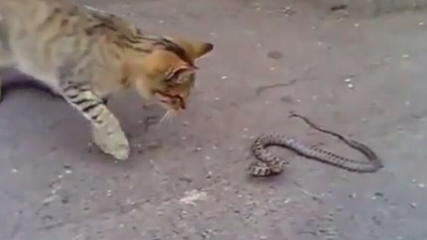 En este video podrán observar cómo durante más de siete minutos un gato se enfrenta sin miedo a una serpiente que encontró en el camino.