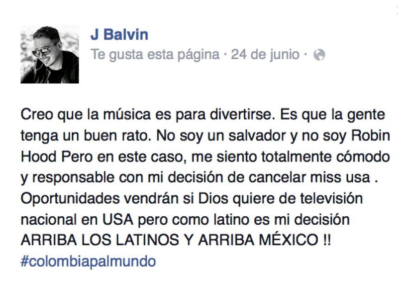 Aunque el reguetonero colombiano J. Balvin ha recibido inmensas muestras de apoyo por su decisión al cancelar su presentación en Miss Usa, todo gracias a los comentarios racistas de Donald Trump, otros internautas no están tan convencidos de lo que hizo.