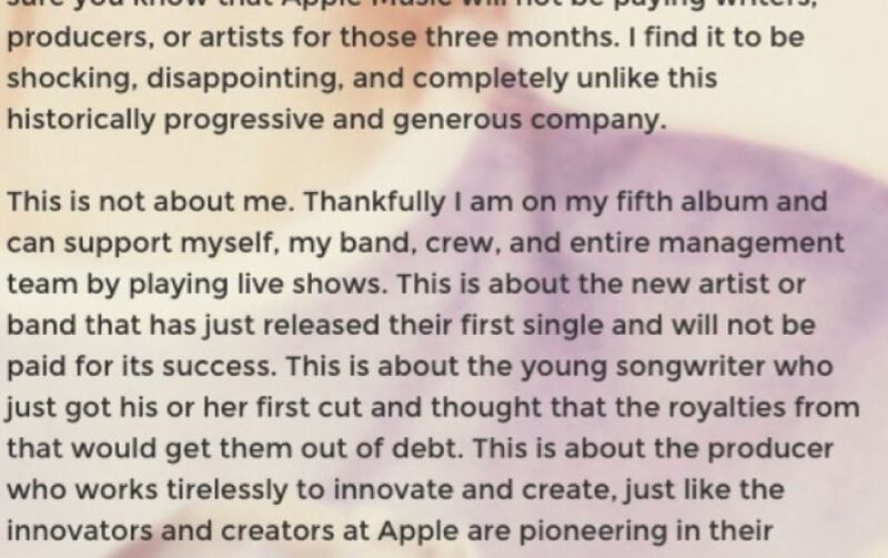 7.Taylor tiene una ética de trabajo invaluable. Le gusta luchar para que la gente que trabaja en la industria sea bien paga por su talento. Esto fue lo que le escribió a Apple. Foto: Tumblr/taylorswift