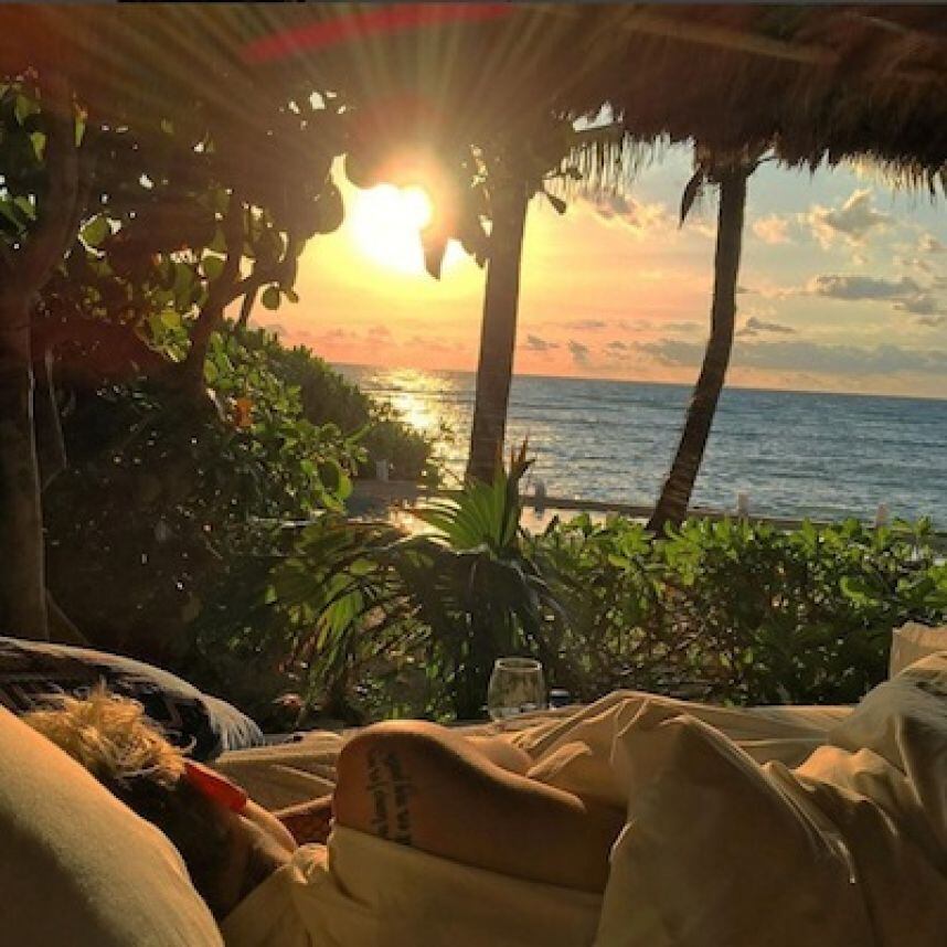 “El mejor lugar para hacer música después de un corazón roto”, publicó el canadiense con guitarra en mano y su novia presente, desde un paisaje hermoso, que delata su estancia en la Riviera Maya. Foto: Instagram/justinbieber