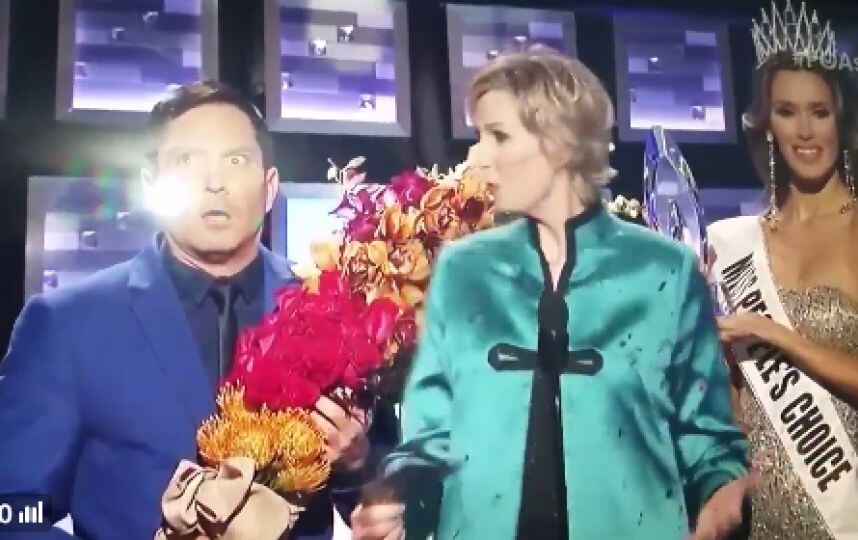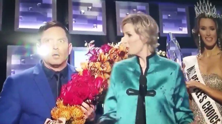 Durante la ceremonia de entrega de los People’s Choice Awards, Jane Lynch, imitó a su colega Steve Harvey y “se confundió” al entregar el premio, tal como ocurrió en la noche de gala de Miss Universo 2015.