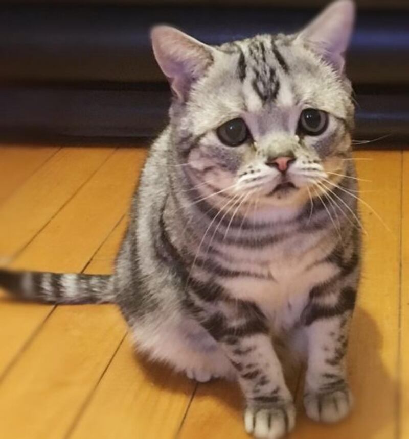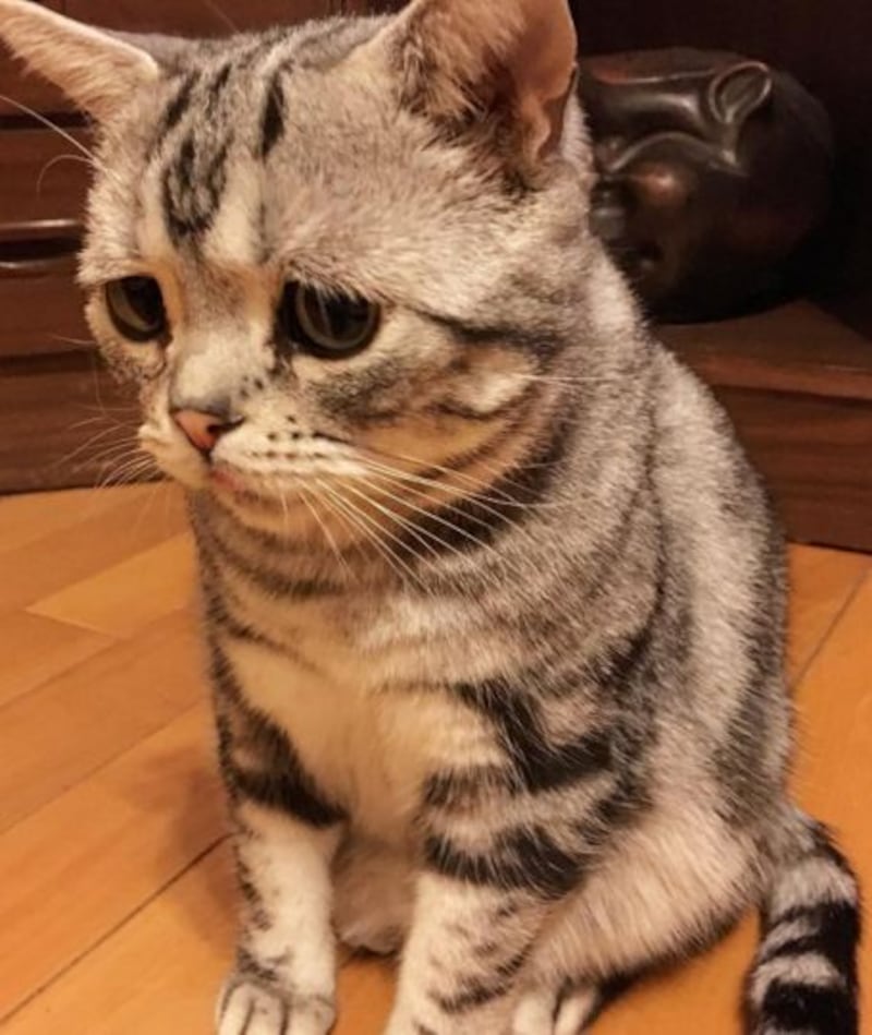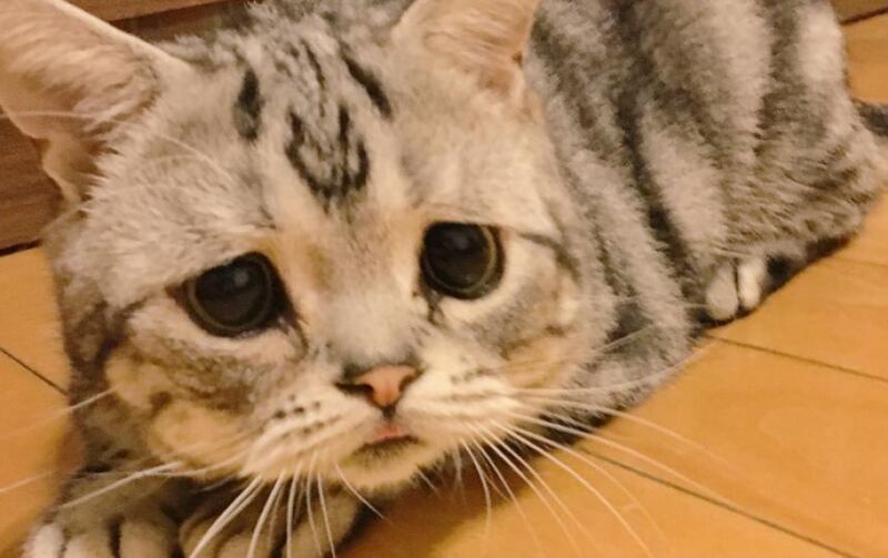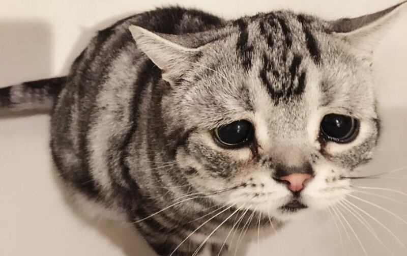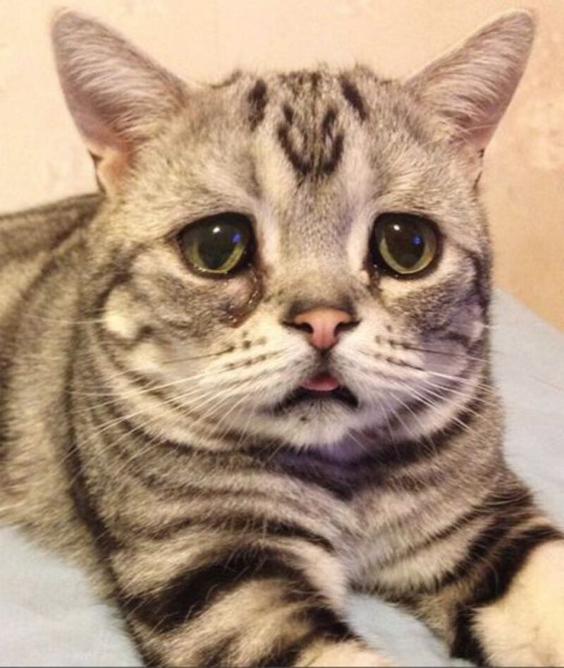 Este gato se está haciendo famoso por la expresión de su rostro, generada por la peculiar forma de sus ojos. Pareciera que “Luhu” pasa por un momento muy difícil.
